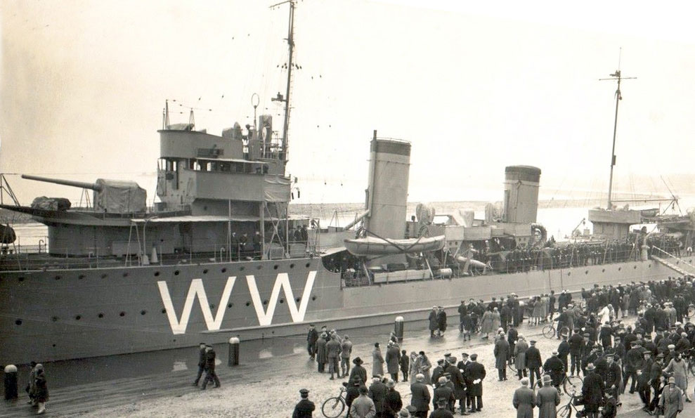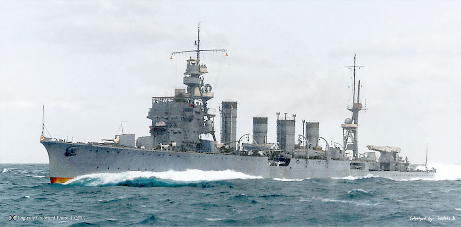 At 7.15pm a Japanese aircraft dropped flares illuminating PERTH and the other ships and fifteen minutes later PERTH opened fire on destroyers delivering a torpedo attack on her port side. The destroyer HMS JUPITER hit what was thought to have been a Dutch mine and exploded and sank at 9.25pm. PERTH passed by survivors from HMS ELECTRA at 10.15pm but was under orders not to stop and attempt rescue. At 10.30pm PERTH and HOUSTON once again began an exchange of fire with NACHI and HAGURO and at the same time the IJN destroyers delivered another torpedo attack.