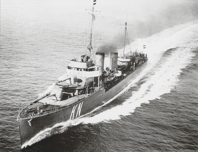 The allied cruisers were steaming in line ahead led by De RUYTER, then PERTH, HOUSTON, JAVA. Just after 11pm NACHI and HAGURO fired torpedoes hitting both JAVA and De RUYTER. JAVA blew up an with appalling explosion. Her stern broke off and she sank in fifteen minutes with the loss of of over 500 men. PERTH had to swerve violently to avoid colliding with De RUYTER. De RUYTER stayed afloat for nearly another two hours before sinking. Admiral Doorman and 344 of his crew were lost in the sinking.