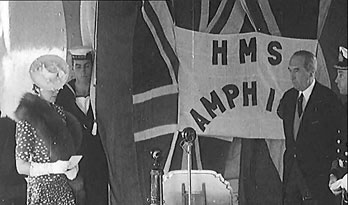 At 1.15pm the dignitaries arrived and went to lunch in the Captain’s cabin. At 2.15pm the the ship’s company fell in on the wharf and soon after HRH, The Duchess of Kent arrived. The ship was renamed by HRH at 2.55pm. As the name was unveiled lifebuoys bearing the ship’s new name were slung into place. After a few speeches and a presentation, the Duchess of Kent departed at 3.05pm.